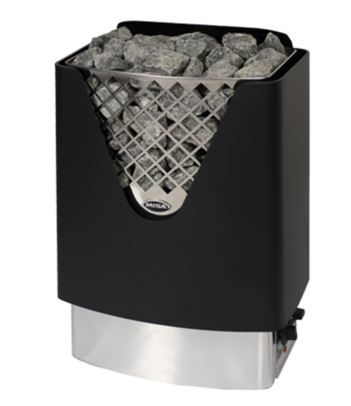 Kiukaan sisäosa on ruostumatonta terästä ja ulkokuori on maalattu mustaksi. Kiukaan säätimet ovat sivulla ja ovat helposti vaihdettavissa asennuksen yhteydessä puolelta toiselle.