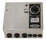 Sopii 12-15 kW 2-tehoryhmään kytketyille kiukaille. Päälläoloaika max. 4 h ja esivalinta-aika 8 h. Ohjauskeskus asennetaan kuivaan tilaan. Löylyhuoneeseen asennetaan mukana tuleva lämpötilansäädin 43401.